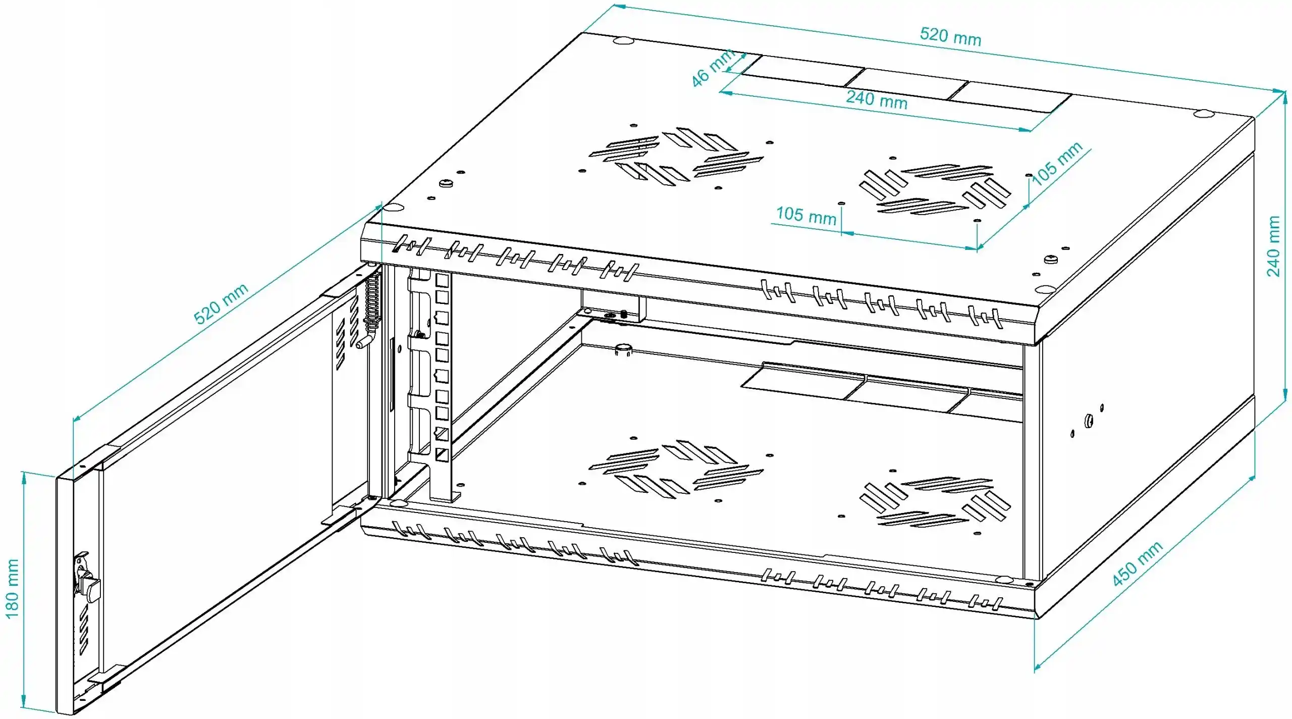 Fabriquée en tôle de qualité, l’armoire allie rigidité et légèreté, permettant à une seule personne de l’installer facilement. La paroi arrière amovible facilite les mises à niveau et offre un accès simple au câblage sortant. Les rails RACK comportent de nombreuses ouvertures pour un passage de câbles simplifié. Avec une largeur compacte de seulement 520 mm, cette armoire est parfaitement adaptée aux espaces restreints tout en conservant toutes ses fonctionnalités.