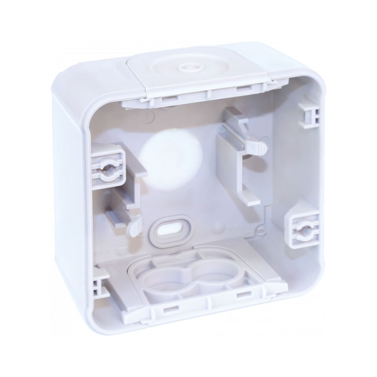 Cette boite 1 poste blanc pour montage en saillie OXXO, de la marque EURHOM, est un accessoire d’installation servant à fixer les mécanismes électriques comme les prises, les interrupteurs ou les boutons poussoirs. Elle permet de monter les appareils destinés à être encastrés, en saillie. Cette boîte, de couleur blanche, peut accueillir different appareillage . Elle possède également des entrées, prédécoupées, pour faciliter l’admission des câbles.