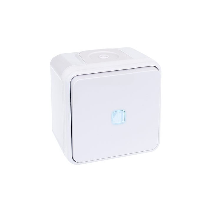 Ce modèle intègre un voyant lumineux, ce qui facilite son repérage dans l’obscurité. De plus, grâce à son indice de protection IP55, vous pouvez l’installer en saillie dans des zones exposées à l’humidité ou à la poussière, comme en extérieur ou dans un garage.
