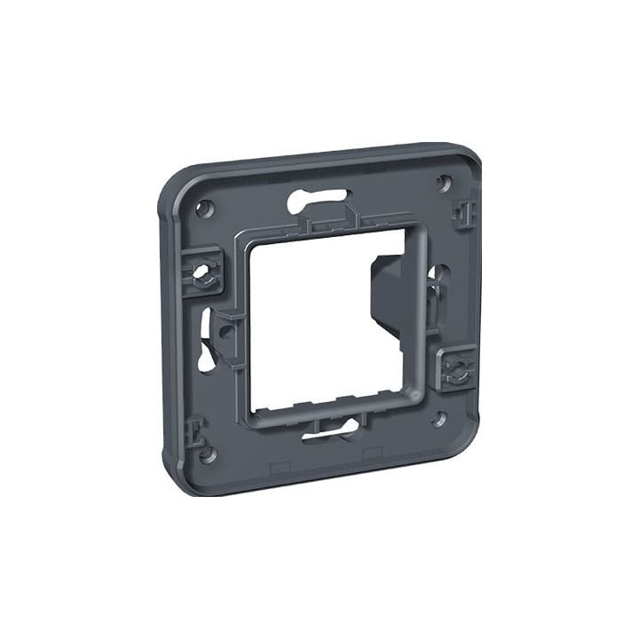 Ce cadre EUROHM, de la marque Schneider Electric, est un support de fixation utilisé dans le montage des mécanismes électriques comme les prises de courant, les boutons poussoirs et les interrupteurs. Il permet de fixer et de regrouper 2 appareillages en position horizontale, Ce support apporte également une protection complémentaire aux mécanismes auxquels il est associé. Ce cadre possède un haut niveau de protection contre les chocs et contre les intrusions de saletés et de jets d’eau avec un indice IP55 et IK08. Il offre une nouvelle apparence aux appareillages ainsi qu’au mur sur lequel il est monté grâce à sa couleur grise.