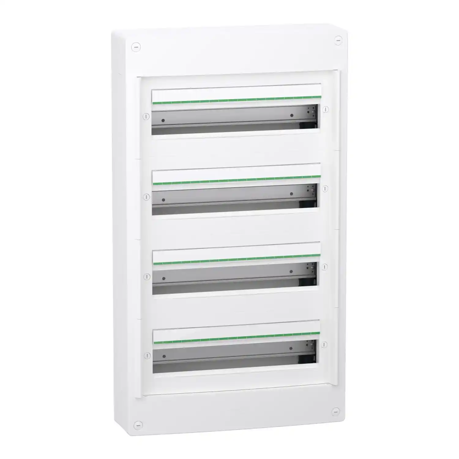 Ce coffret PrismaSeT XS est un coffret en saillie de distribution électrique, en plastique, composé de 4 rangées de 18 modules de 18mm, avec des degrés de protection IP30 et IK08 sans porte. Il peut accueillir tous types d’appareillages modulaires. Compatibles avec nos produits embrochables (XE), ce coffret est dédié à une installation en intérieur et est destiné aux secteurs résidentiel et tertiaire. Le coffret, le plastron et la porte de couleur blanche (RAL 9003) rendent plus esthétique vos équipements. La classe d’isolation électrique est de classe II.