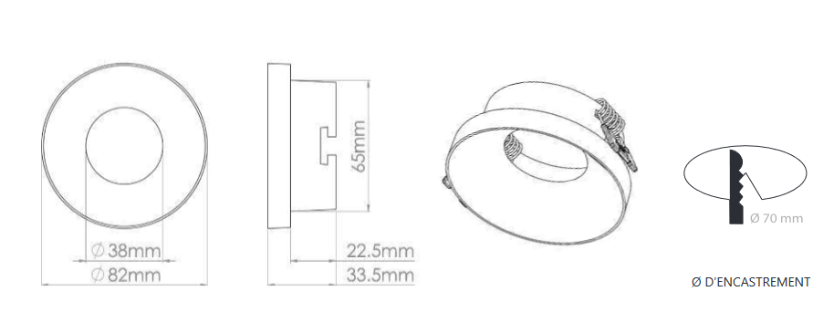 Caractéristiques de la collerette fixe Ronde pour Ampoules LED GU10 conique Blanc