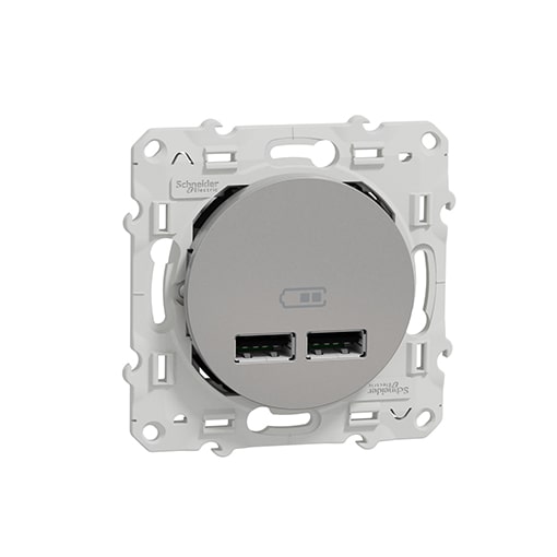 SCHNEIDER Odace Double chargeur usb 2.1 A – aluminium – S530407