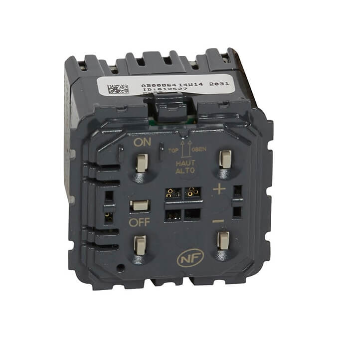 Ce variateur Céliane s'installe en encastrement dans les installations résidentielles et tertiaires conformément à la NF C 15-100. Compatible toutes charges (LED, halogène, fluo), il se câble sur circuit 10A avec section 1,5 mm² minimum. Installation simple en remplacement d'un interrupteur existant sans modification du câblage. Convient parfaitement pour l'éclairage des bureaux, commerces et logements collectifs nécessitant une modulation lumineuse.
