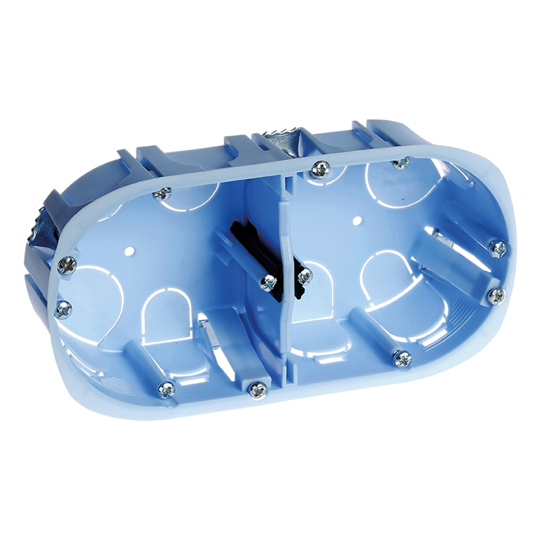 Accueil / materiel electrique elecpromo / Accessoires d'installation et boites / Boîte d'encastrement / Boites Cloison sèche / EUROHM 52045 – BOÎTE D’ENCASTREMENT, CLOISON SÈCHE, 2 POSTES