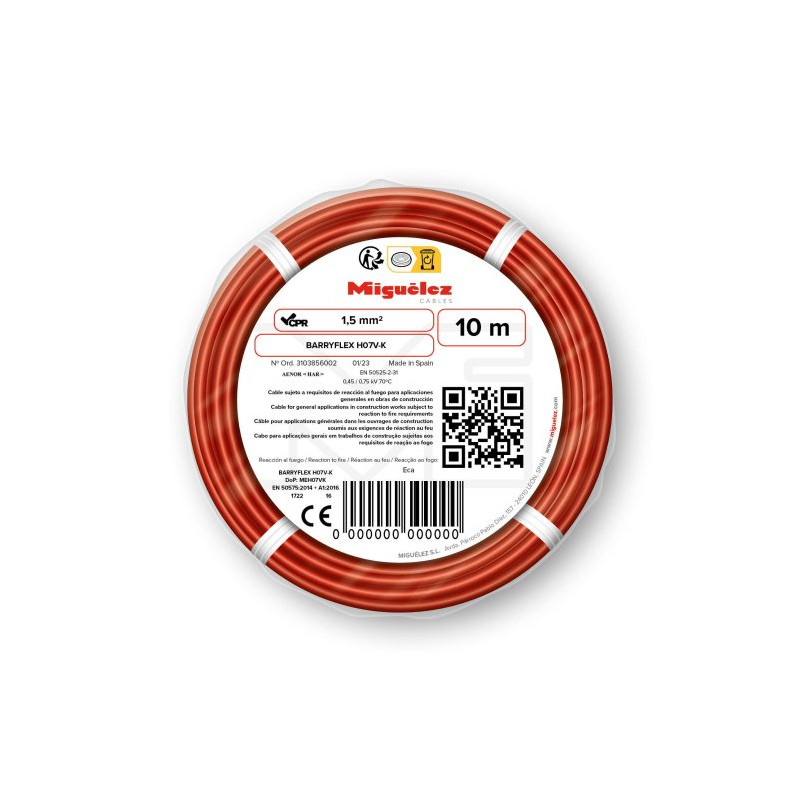 Le fil électrique H07V-K 16mm² rouge, conditionné en format TGL, est conçu pour les installations électriques fixes dans les tableaux de distribution, les équipements industriels et les bâtiments tertiaires. Grâce à sa structure en cuivre souple (classe 5) et son isolation en PVC, ce fil garantit à la fois sécurité, maniabilité et durabilité dans des environnements exigeants.