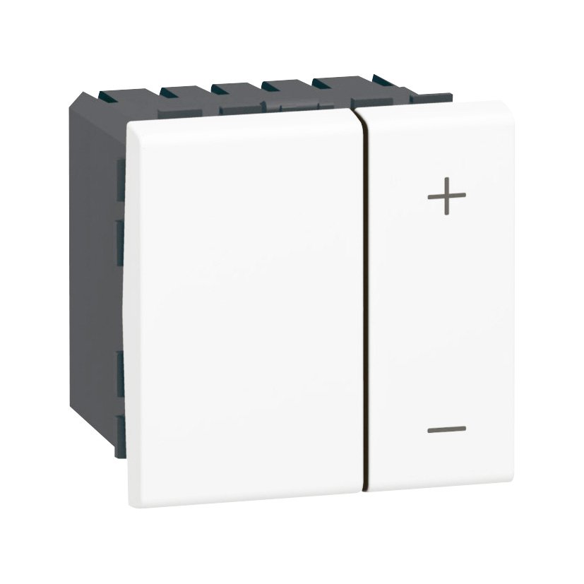 Ce variateur Mosaic 2 modules s'installe dans les coffrets de distribution tertiaire et résidentiel collectif pour la gestion d'éclairage dimmable. Compatible toutes lampes LED, halogènes et incandescentes, il répond aux exigences de la NF C 15-100 sur les circuits d'éclairage. Installation en encastrement dans boîtiers d'appareillage ou apparent selon DTU 70.1, avec raccordement 2 fils sans neutre.