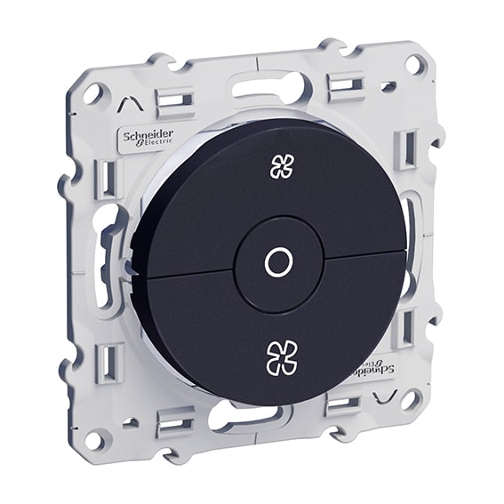Installé aussi bien dans des logements neufs qu’anciens, l’interrupteur de ventilation mécanique commandé est l’appareillage idéal. Odace Interrupteur VMC Anthracite  possède deux fonctions pour moduler la vitesse de ventilation et une position arrêt.. (Vendue séparément par lot de 10 griffes Odace)