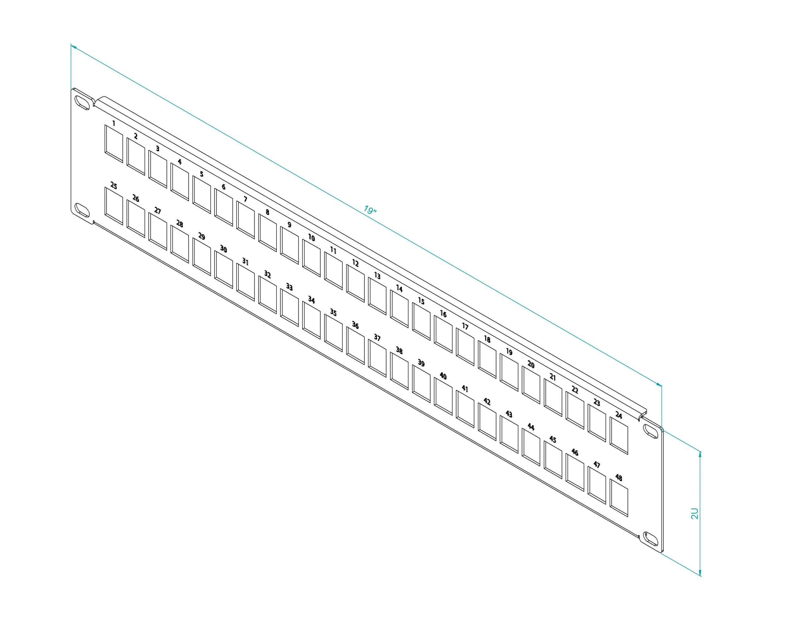 - Modularité : le panneau se configure facilement avec 48 emplacements pour modules Keystone, ce qui permet une adaptation efficace aux exigences croissantes du réseau.