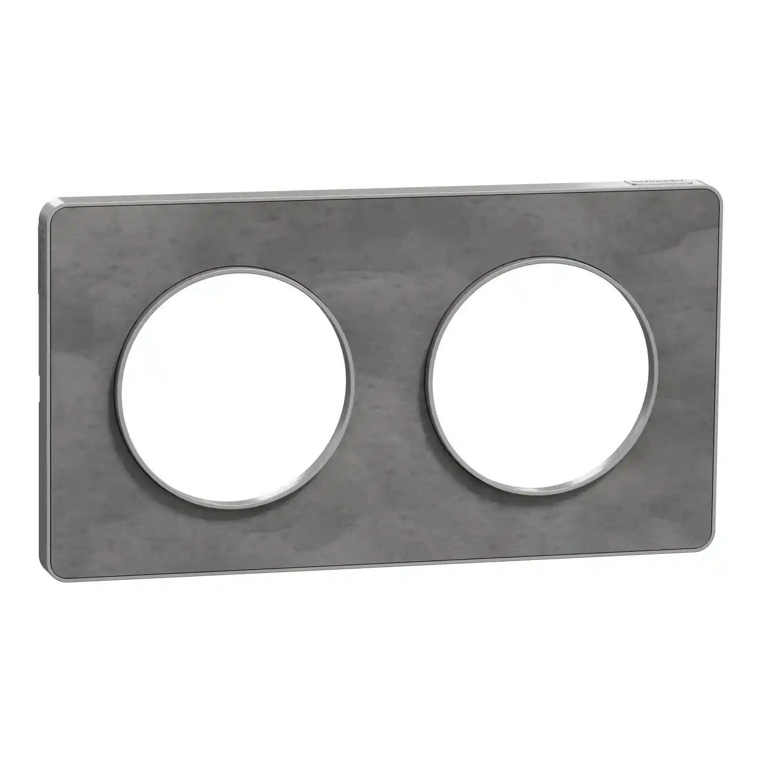 Plaque pierre ardoise avec liseré aluminium – Alu 2 postes horiz./vert. 71mm – S530804V, Cette plaque Odace Touch, de la marque Schneider Electric, est utilisée dans le travail de montage des mécanismes de commande et d’alimentation. Elle permet de compléter les interrupteurs, les poussoirs, les prises et les chargeurs composables montés en encastré. Cet accessoire est capable de recevoir 2 postes horizontaux ou verticaux, avec un entraxe de 71 mm. Cette plaque assure la finition et la décoration de ces mécanismes grâce à sa couleur ardoise avec liseré en aluminium. Elle possède un niveau de protection contre les pénétrations de corps solides et les intrusions de saleté dans le mécanisme.