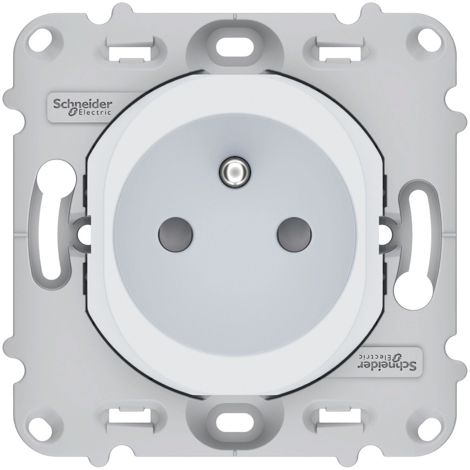 Cette prise de courant Ovalis, de la marque Schneider Electric, est un mécanisme d’alimentation servant à brancher les appareils électriques et électroménagers. Elle permet de mettre sous tension les équipements domestiques nécessitant une source d’énergie électrique pour fonctionner. Cette prise de courant possède un puits bipolaire avec un contact de terre pouvant acheminer un courant de 16 A, avec une tension de 250 V. Son raccordement se fait par des bornes sans vis, avec une capacité de 4 mm2. Ce mécanisme est livré sans plaque de finition.