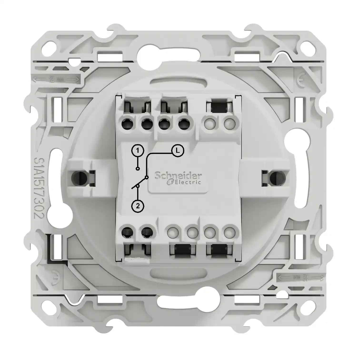 Cet interrupteur va-et-vient Odace de Schneider Electric permet de commander un éclairage depuis deux points différents. Facile à installer grâce à ses bornes sans vis, il convient aux installations résidentielles et professionnelles.