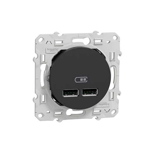 SCHNEIDER Odace Prise USB double Anthracite 2.1 A – S540407