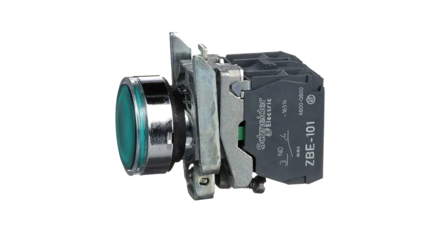 Schneider Electric propose un bouton poussoir lumineux vert Harmony.