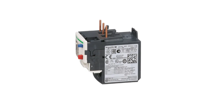 Schneider relais de protection thermique -7->10A est doté d’un boutons manuels Test et Réarmement, d’un contact auxiliaire de déclenchement et aussi d’un voyant. Disponible dans le monde entier,