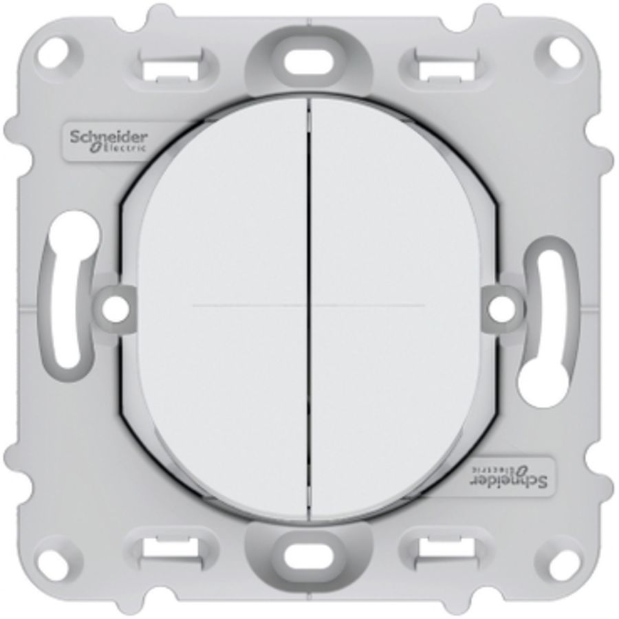 Ce double va-et-vient Ovalis, de la marque Schneider Electric, est un mécanisme de commande servant à piloter 2 circuits d’éclairage différents. Il est à associer avec un mécanisme similaire ou avec 2 va-et-vient simples pour permettre la gestion de la lumière. Ces 2 touches peuvent commander directement l’allumage et l’extinction des lampes, installées sur deux réseaux distincts. Ce double va-et-vient peut être utilisé sur un réseau d’éclairage de 10 AX, avec une tension de 250 V. Il possède des bornes à vis d’une capacité de 2,5 mm2 pour la réception des câbles.