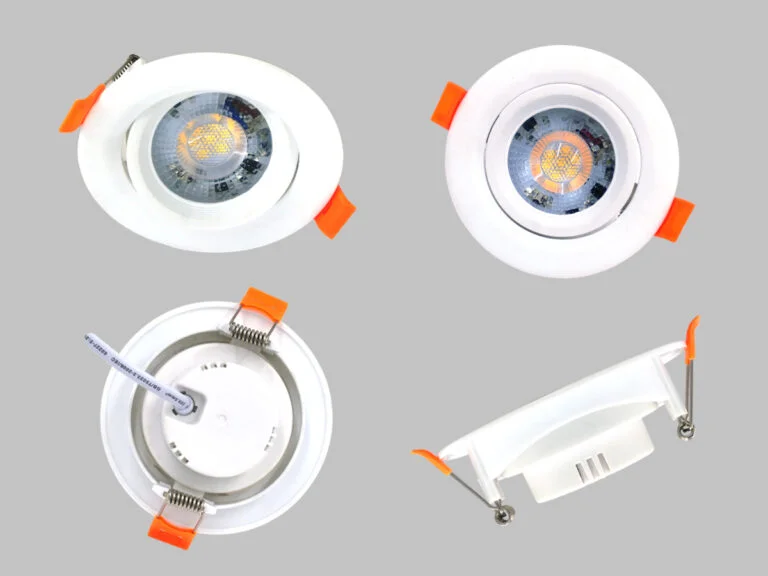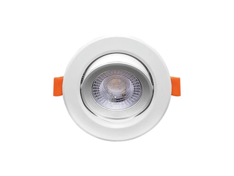 Spot encastrable LED SMD 4,9 W, blanc mat 3 000 K, avec lentille – Flux lumineux 370 lumens – Couleur de lumière blanc chaud 3 000 K – Angle de diffusion 38° – Couleur blanc mat – Luminaire rond inclinable – Dimensions ø 90 x 42 mm – Matériau PC et plastique – Kit de montage non inclus – Diamètre d’encastrement ø 75 mm – Durée de vie 15 000 heures – Tension 220-240 V (50/60 Hz).