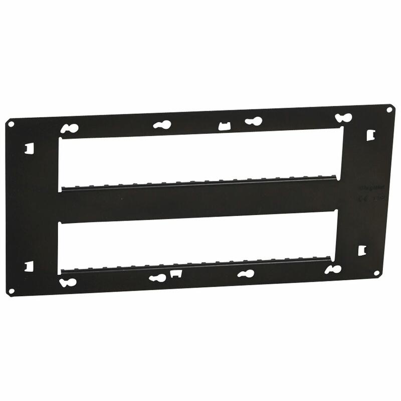 Ce support universel Batibox, de la marque Legrand, est un complément de mécanisme servant à son assemblage. C’est un élément indispensable dans le montage des appareils composables, pour une installation encastrée ou en saillie. Grâce à son module grand format, il est en mesure d’assembler côte à côte, des mécanismes jusqu’à 2 x 10 modules. Ce support est compatible avec les gammes de produits Legrand : Mosaic ou Céliane comme les prises, les interrupteurs ou les boutons poussoirs. Il se fixe sur la boîte d’encastrement à l’aide de vis.