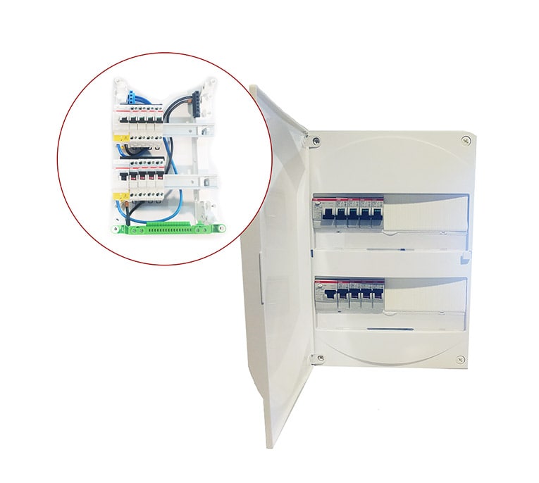 Accueil / materiel electrique elecpromo / Tableaux électriques et coffrets / Tableau électrique pré-équipé / Tableau précâblé ABB / Tableau électrique équipé 3 rangées ID 40A -1ID 40AC – 8 disjonteurs