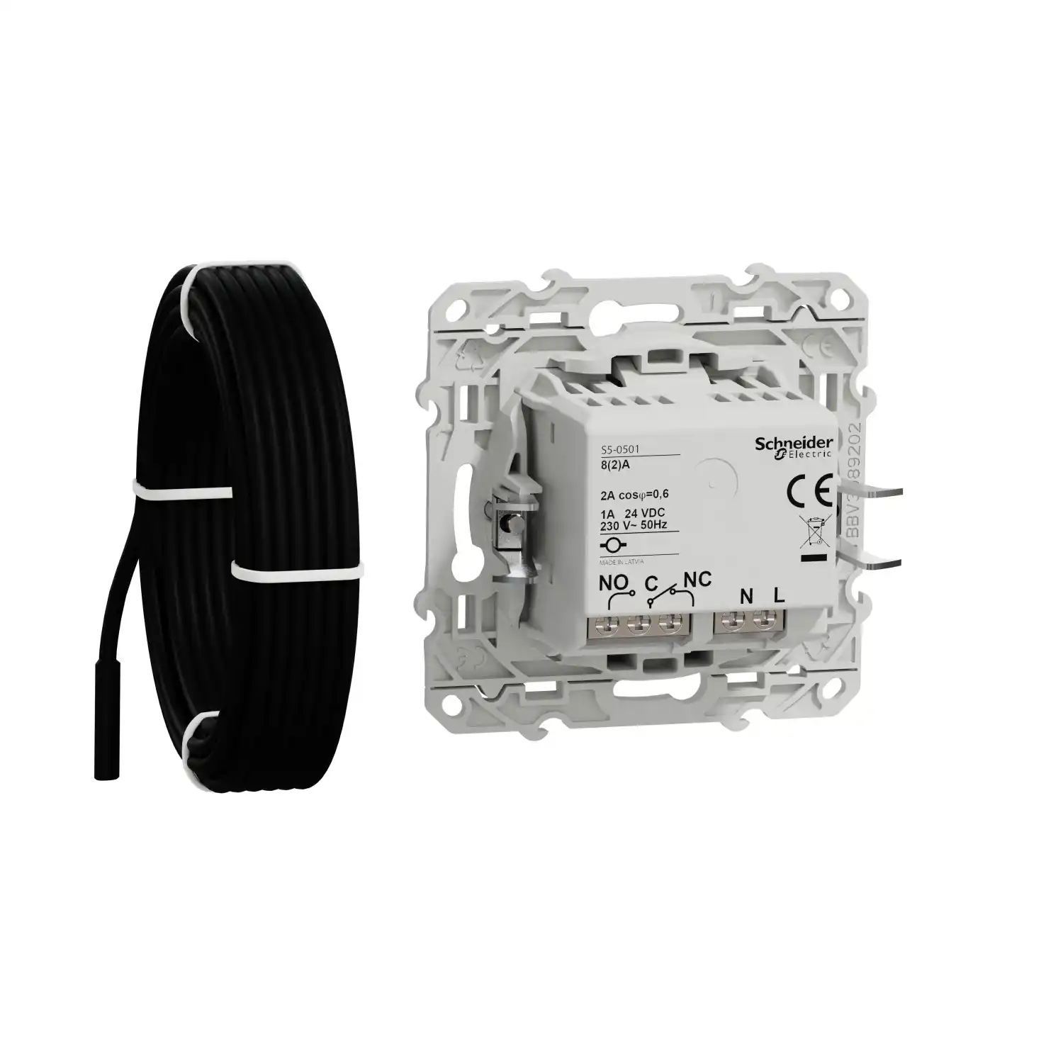 SCHNEIDER Odace Thermostat électronique Odace -10A – Blanc -S520507, Le thermostat Schneider Odace Blanc est spécialement conçu pour les systèmes de plancher chauffant. Ce thermostat de haute qualité, livré avec une sonde, permet de réguler efficacement la température de votre plancher chauffant pour un confort optimal. Grâce à son design élégant et moderne, il s’intègre parfaitement dans tout type d’intérieur. Facile à installer et à utiliser, ce thermostat est l’outil idéal pour maintenir une température agréable dans votre maison tout en réalisant des économies d’énergie.