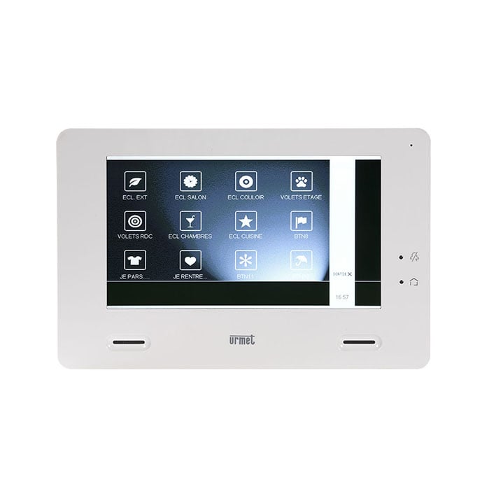 URMET Moniteur supplémentaire pour kit-Mini-Note+ peut s’installer un peu partout dans la maison. Ce moniteur vous permet de recevoir les appels effectués depuis la plaque de rue et de communiquer à distance avec les visiteurs. Cet équipement comporte un écran tactile de 7 pouces et peut intégrer des accessoires domotiques de la gamme Yokis et gérer jusqu’à 4 scénarios domotiques
