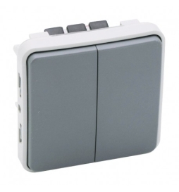 Interrupteur double va et vient étanche complet gris IP55 LEGRAND Plexo – 069715