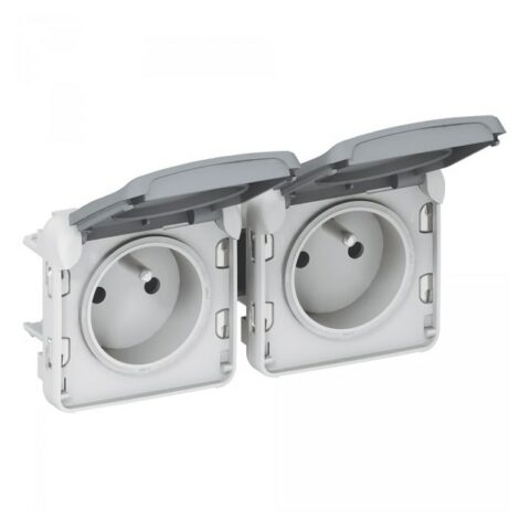 Prise de courant 16A 2P+T Plexo IP55 – Complet encastré – Gris -069831