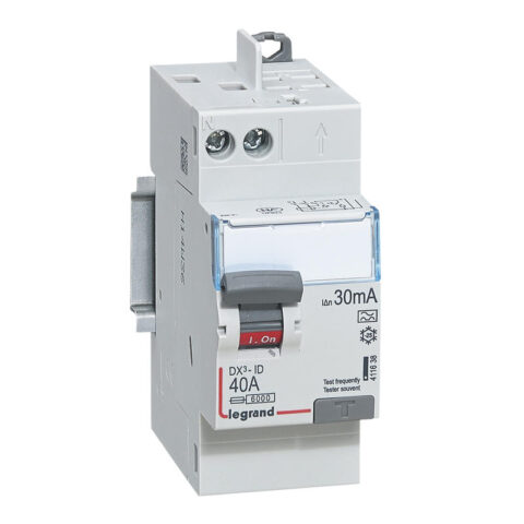 Interrupteur différentiel dx³-id – vis/vis – 2p – 230v~ – 40a – type hpi – 30ma – départ haut