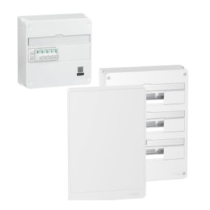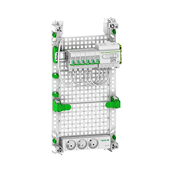 À équiper ou pré-équipé conformément à la norme NF C 15-100, il peut être fixé sur une GTL (Gaine Technique Logement) et comprend une ou plusieurs rangées d’une capacité de 13 ou 18 modules.