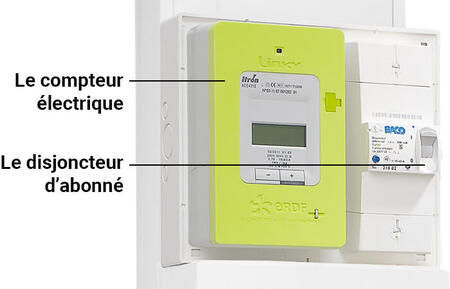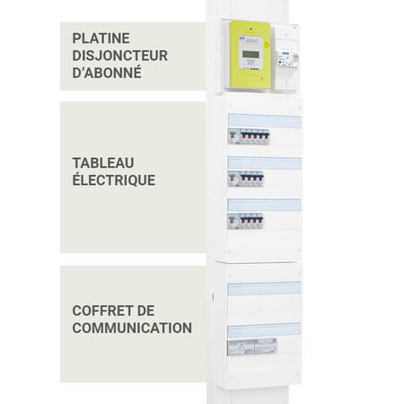 La platine d’abonné comprend le compteur électrique et le disjoncteur d’abonné.