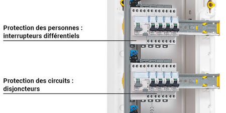 Les disjoncteursdétectent les surintensités et les courts-circuits et protègent les biens en coupant instantanément le courant. On compte un disjoncteur par circuit électrique.